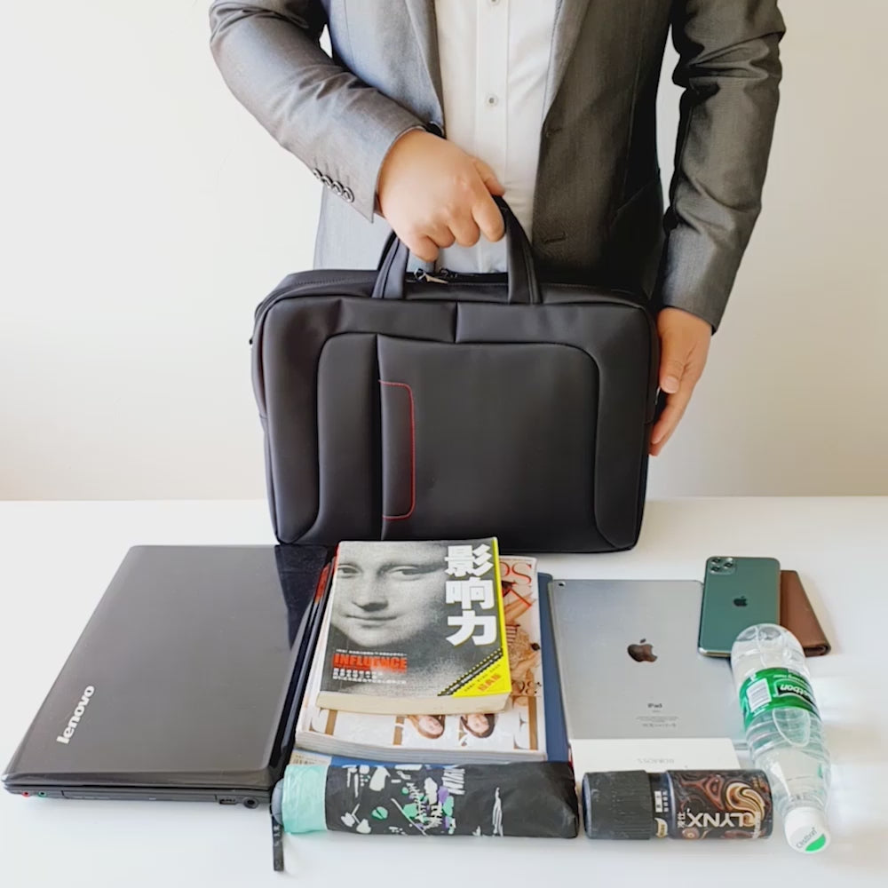 Hotsir Basics Compact Laptop Shoulder Bag Carrying Case with Strap and Zippered Accessory Pocket, Black